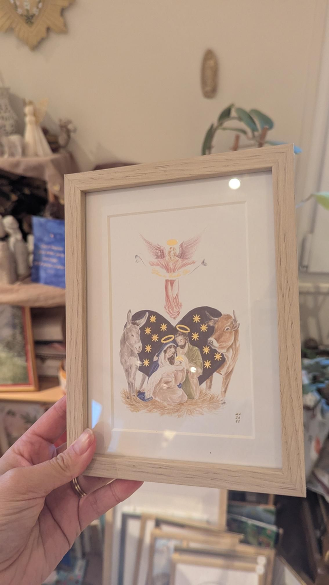 Carte crèche sainte famille cadre+passe-partout